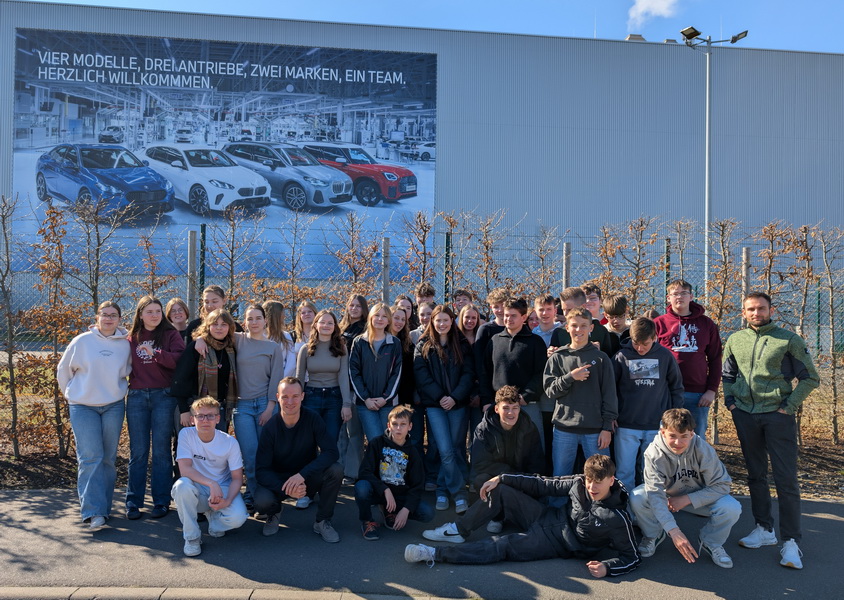 Die Klasse 8a konnte bei einer Exkursion hinter die Kulissen der Sparkasse schauen. Einige Azubis stellten Ausbildungswege bei der Bank vor und erklärten auf verständlichem Niveau, welche Geldanlagen, einschließlich Aktienfonds, es gibt und wie diese funktionieren. Nach einer kurzen Besichtigung des Gebäudes konnten wir in den gut gesicherten Schließfachraum gehen, aber leider nicht in die Fächer schauen. Selbstverständlich nicht, auch die Bankmitarbeiter wissen ja gar nicht, was da so drin liegt. Der Besuch der Gerichtsverhandlung hat leider noch nicht geklappt, wir werden diesen hoffentlich nachholen können. Immerhin haben wir schon mal erlebt, wie die Sicherungsmaßnahmen im Gerichtsgebäude funktionieren und wer alles so bei einer Verhandlung dabei ist. Kurz vor den Osterferien waren die beiden 8. Klassen in Leipzig und konnten bei einer Führung durch die BMW-Werke einmal einen Großbetrieb kennenlernen. Imposant war nicht nur die Architektur der Werksanlage, sondern auch die weitgehend automatisierten Arbeitsgänge. Wir erhielten Einblicke in den Karosseriebau, die Lackierung und die Montage, erlebten Roboter im Einsatz und erfuhren aber auch, dass besonders knifflige Arbeitsschritte eben doch von Menschen gemacht werden müssen. Wusstet ihr schon, dass die bis zu 4 Lackschichten auf dem Auto insgesamt nur halb so dick wie ein Haar sind? Selbstverständlich gab es auch interessante Informationen zu Ausbildungsbereichen im Werk und zu Arbeitsbedingungen. Danke an den Förderverein des Gymnasiums, der die Berufsorientierung finanziell unterstützt und somit solche besonderen Erlebnisse ermöglicht.