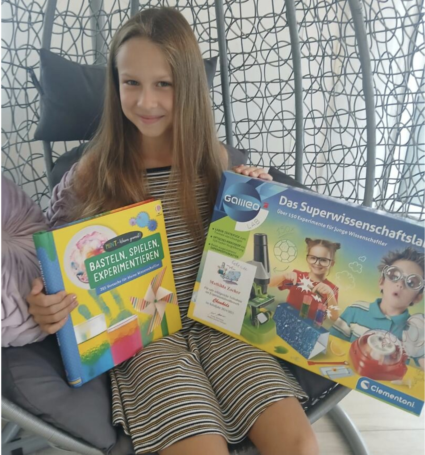Am 16.08.25 fand die Auszeichnungsveranstaltung in Schmalkalden statt. Gewonnen hat Mathilda einen Experimentierkasten mit Mikroskop und ein Bastelbuch. Sie war die einzige Preisträgerin vom OGG Gebesee.